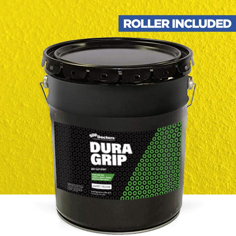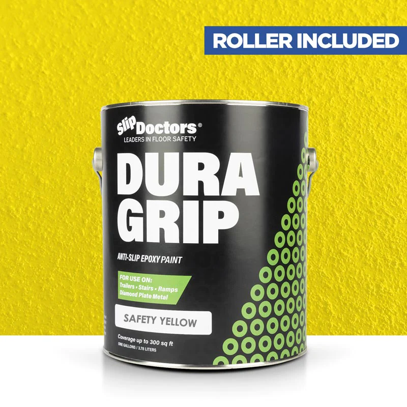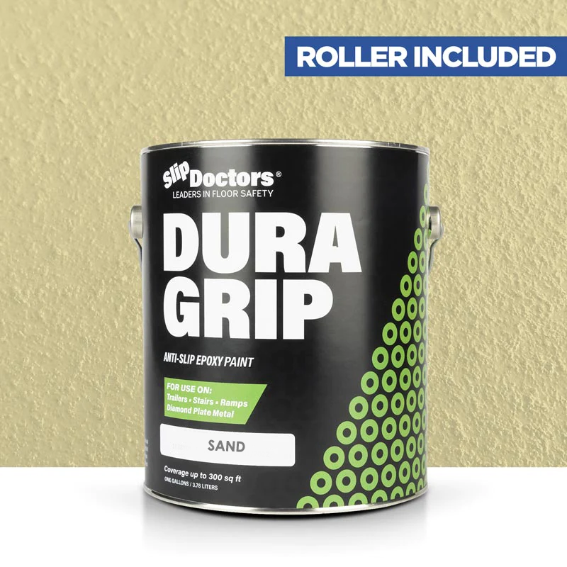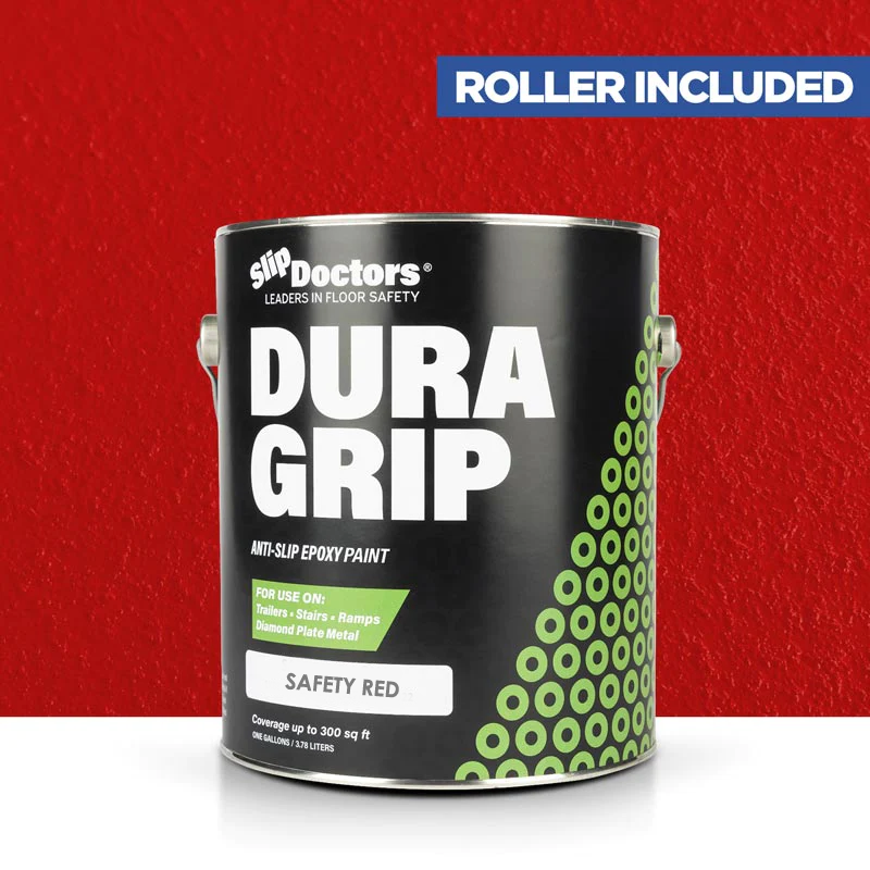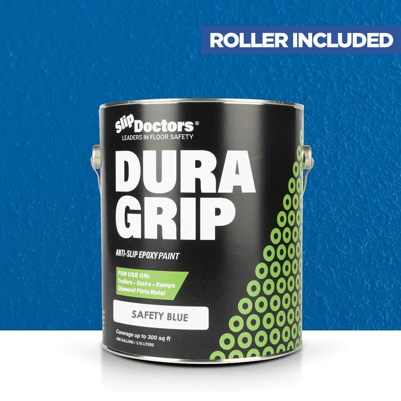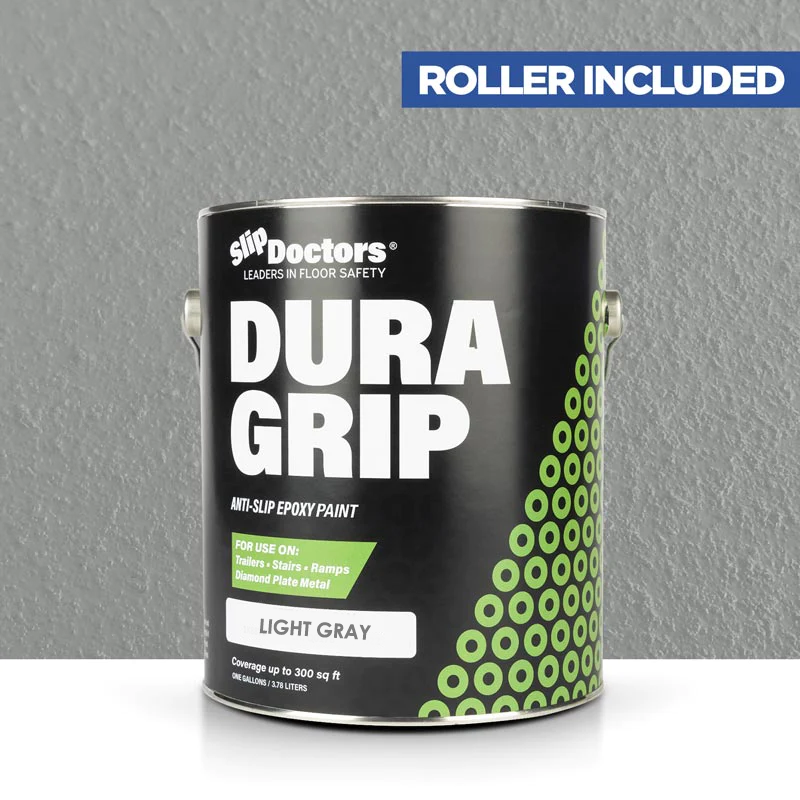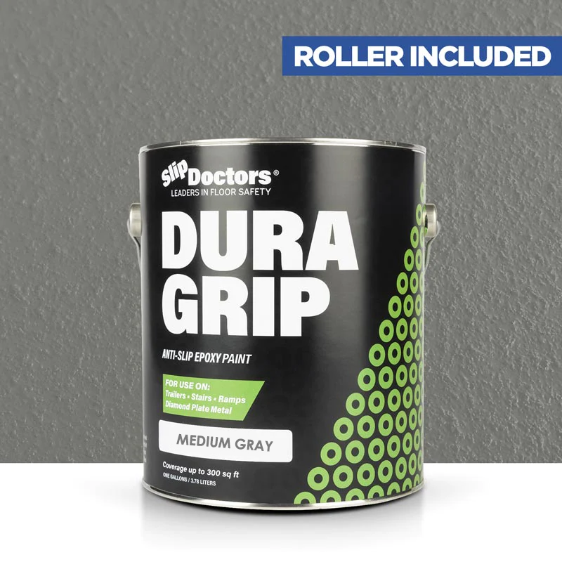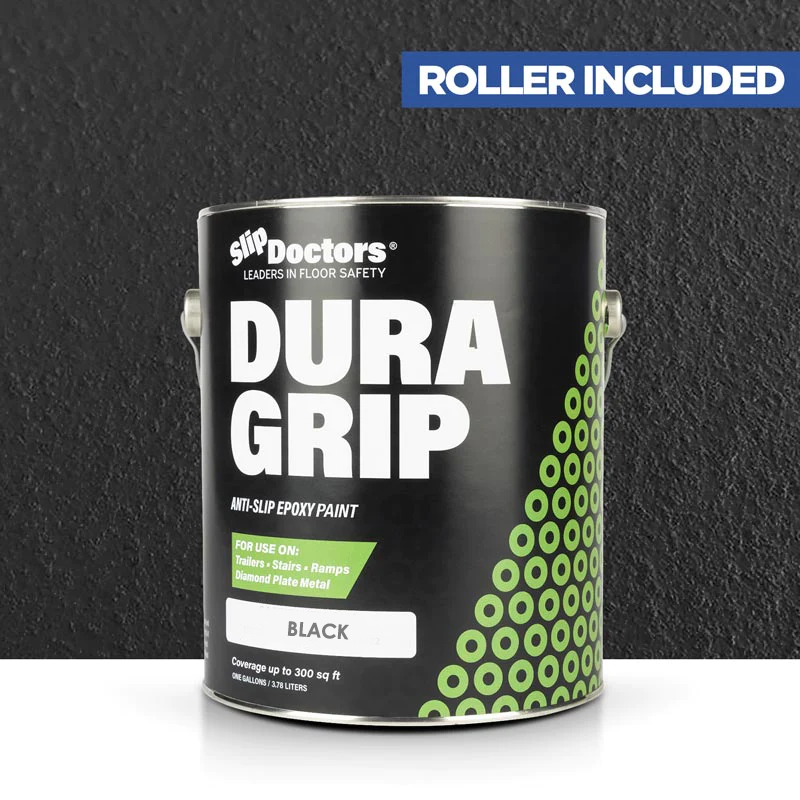 Dura Grip High-Performance Non-Slip Epoxy Paint is an anti-slip surface coating specifically designed to provide a UV resistant highly durable, barefoot-friendly textured paint finish on a variety of substrates. Dura Grip non-slip paint is easy to maintain and ideal for use on diamond-plate, metal ramps, garages, boats, decks, trailers, stairs, locker rooms, pools, laundry rooms and other residential or commercial areas where anti-slip protection is desired. It can be used to seal unwanted leaks in floors or grout. Other benefits will prevent salt and corrosion on metal and other surfaces.