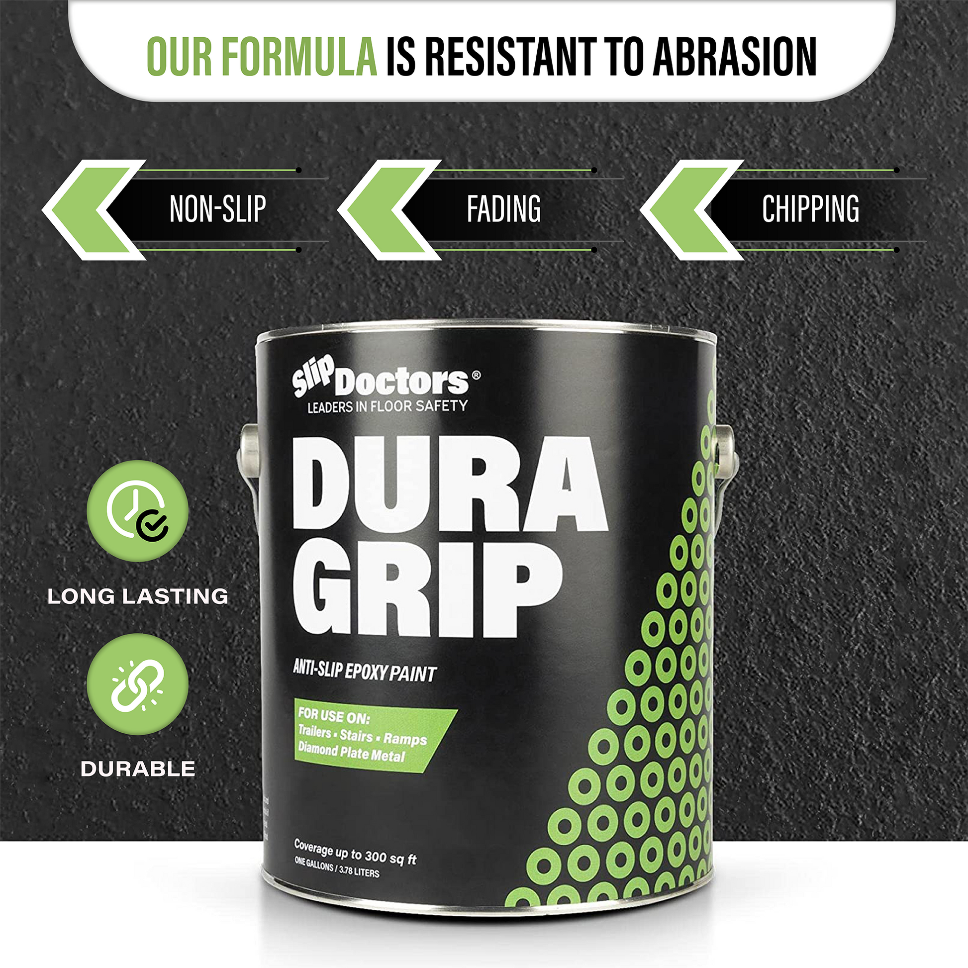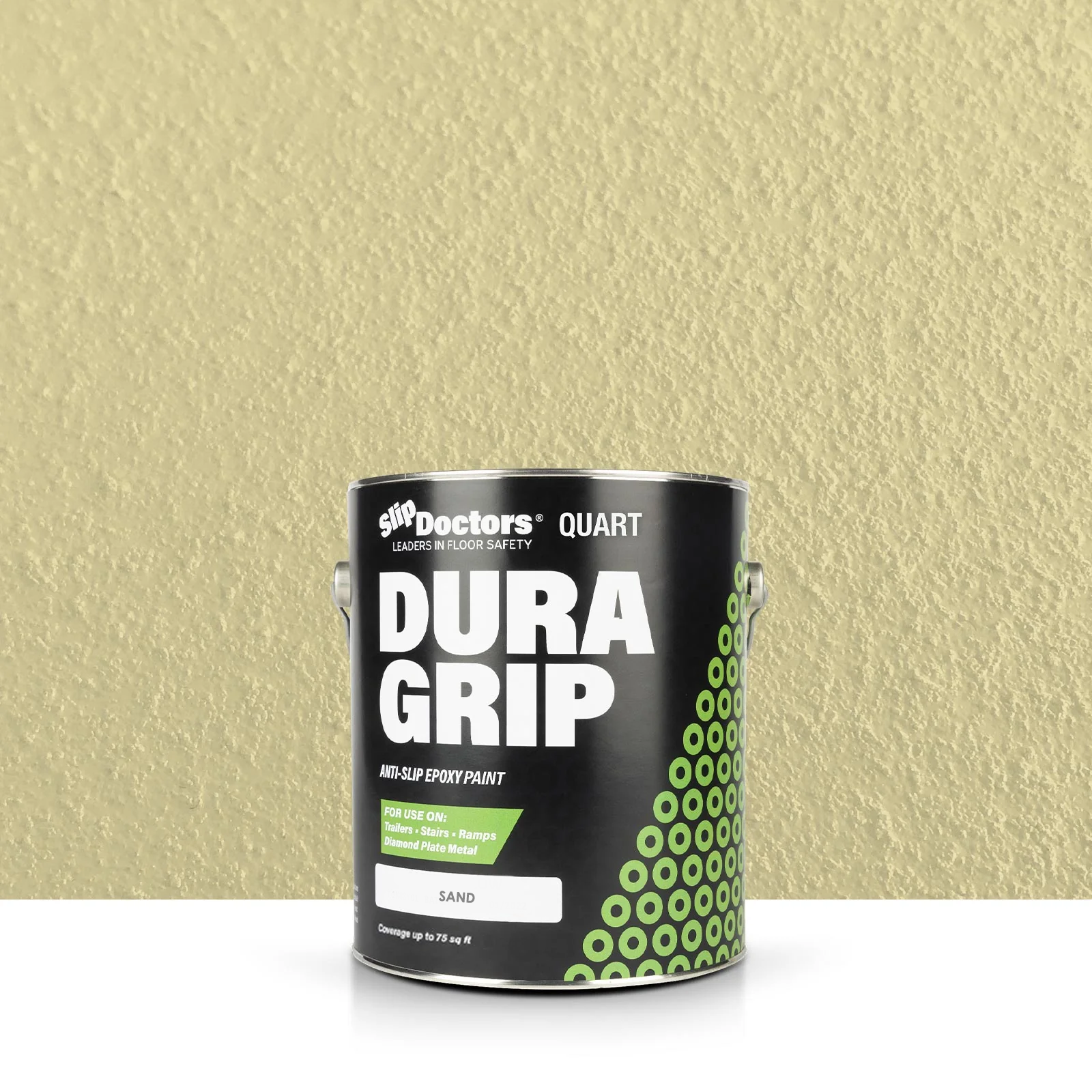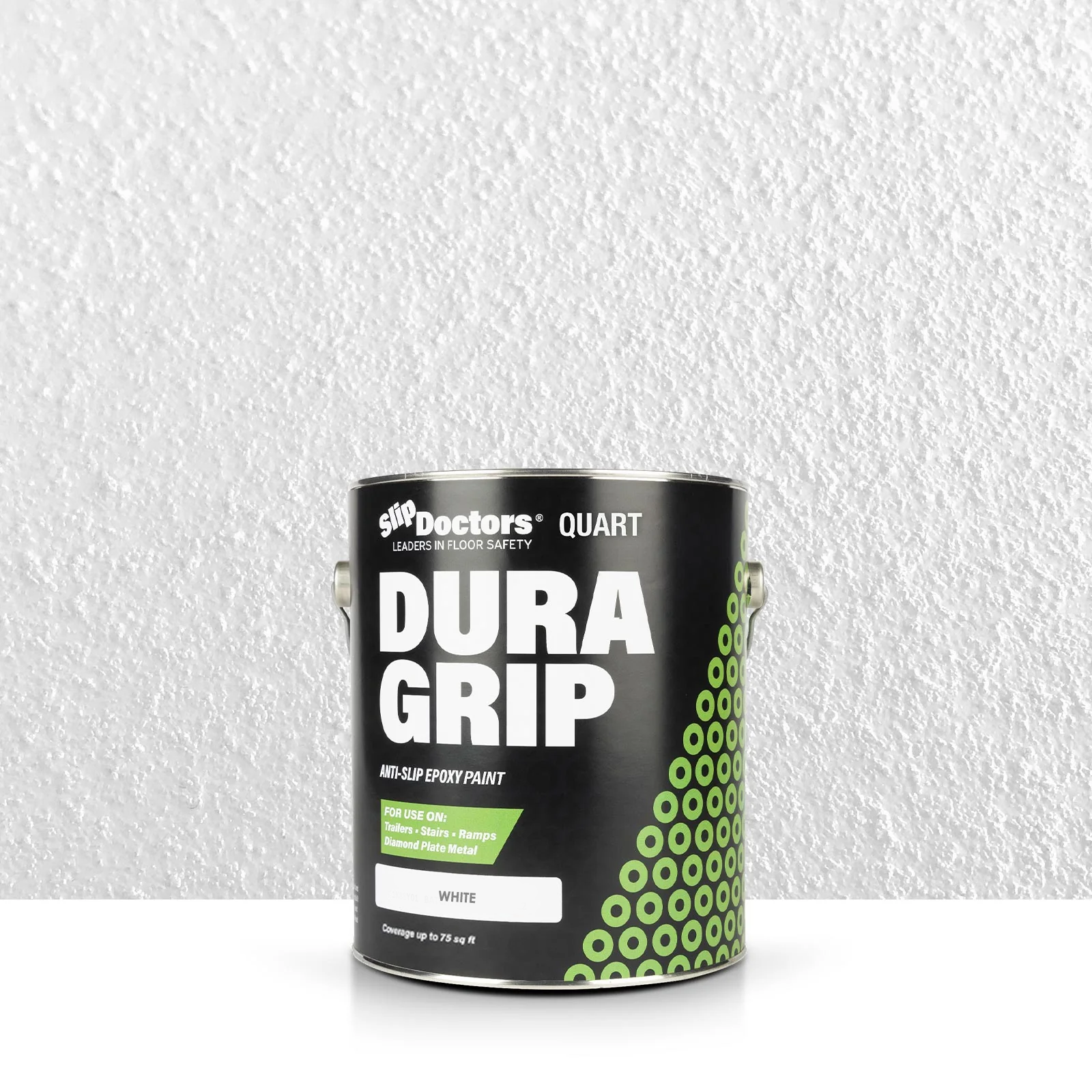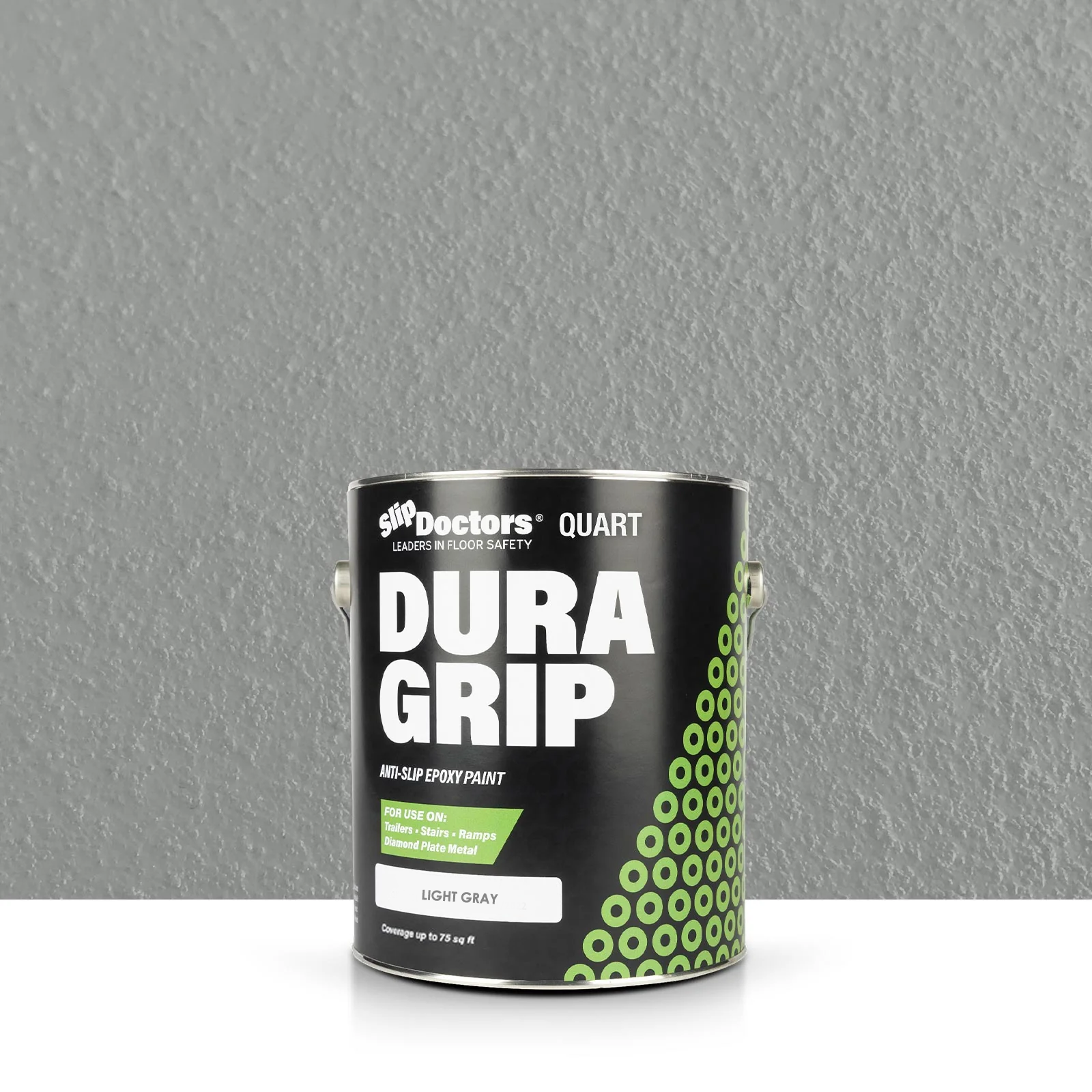 Dura Grip High-Performance Non-Slip Epoxy Paint is an anti-slip surface coating specifically designed to provide a UV resistant highly durable, barefoot-friendly textured paint finish on a variety of substrates. Dura Grip non-slip paint is easy to maintain and ideal for use on diamond-plate, metal ramps, garages, boats, decks, trailers, stairs, locker rooms, pools, laundry rooms and other residential or commercial areas where anti-slip protection is desired. It can be used to seal unwanted leaks in floors or grout. Other benefits will prevent salt and corrosion on metal and other surfaces.